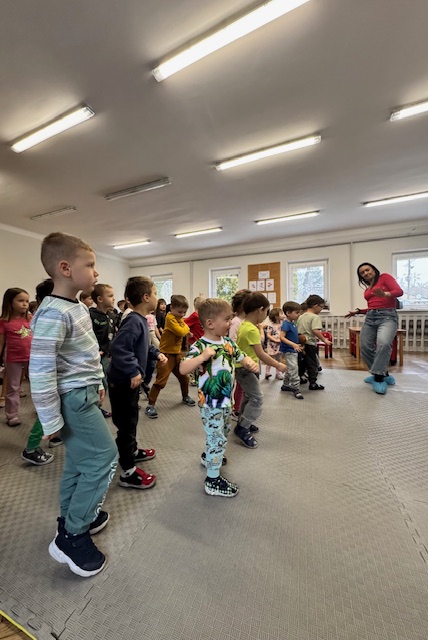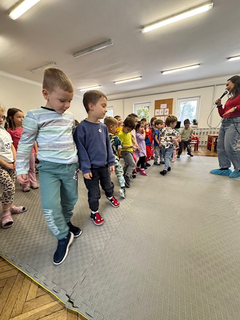 Podczas grudniowej wizyty audycji muzycznej dzieci miały okazję uczestniczyć w ciekawych zajęciach poświęconych muzyce. W trakcie spotkania poznały nowe instrumenty muzyczne, dowiedziały się jak wyglądają oraz w jaki sposób wydobywają się z nich dźwięki. Prowadzący zaprezentował brzmienie poszczególnych instrumentów, a dzieci z dużym zainteresowaniem słuchały i aktywnie uczestniczyły w zajęciach.