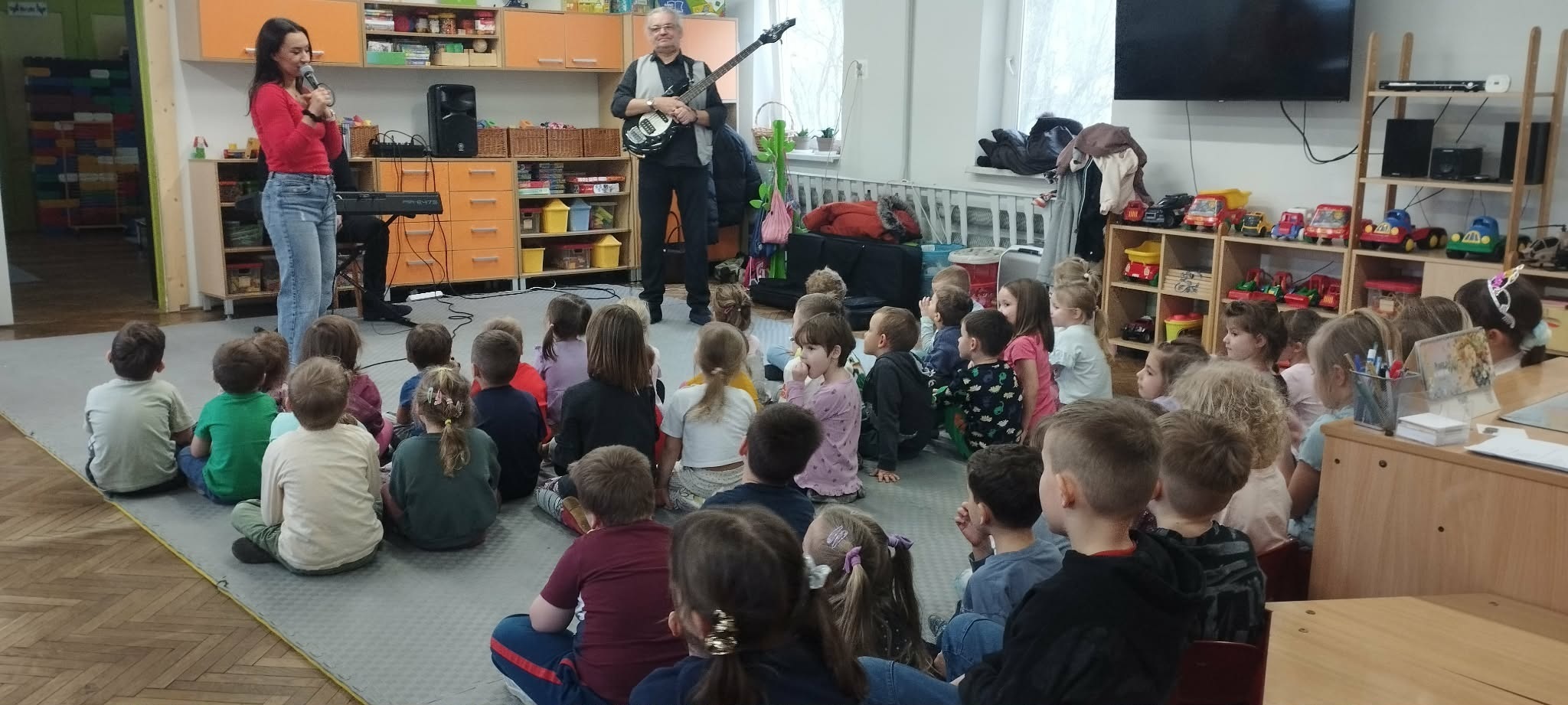 Podczas styczniowej audycji muzycznej dzieci miały okazję przenieść się w świat dźwięków i rytmu. W trakcie spotkania z zaciekawieniem słuchały prezentowanych utworów oraz poznały kolejne instrumenty muzyczne.