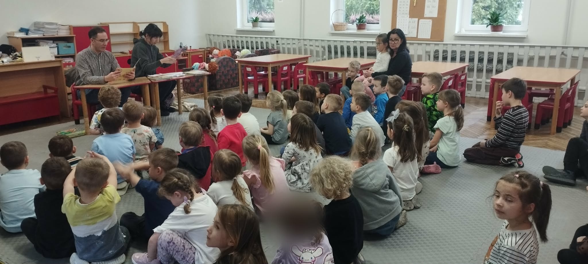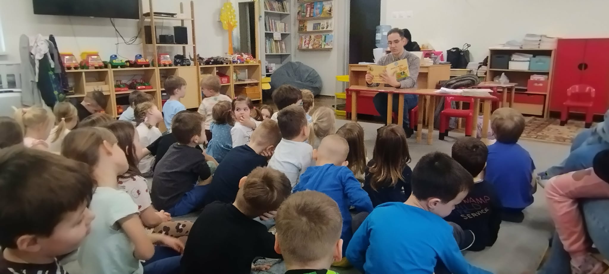 W dniu 24 lutego 2026 roku w naszym przedszkolu odbyło się wyjątkowe wydarzenie - głośne czytanie przygotowane przez przedstawicieli biblioteki. Spotkanie miało na celu rozwijanie zainteresowań czytelniczych wśród dzieci oraz promowanie kontaktu z książką od najmłodszych lat. Po przeczytaniu książki dzieci miały możliwość wypożyczenia książek co sprawiło im wiele radości.