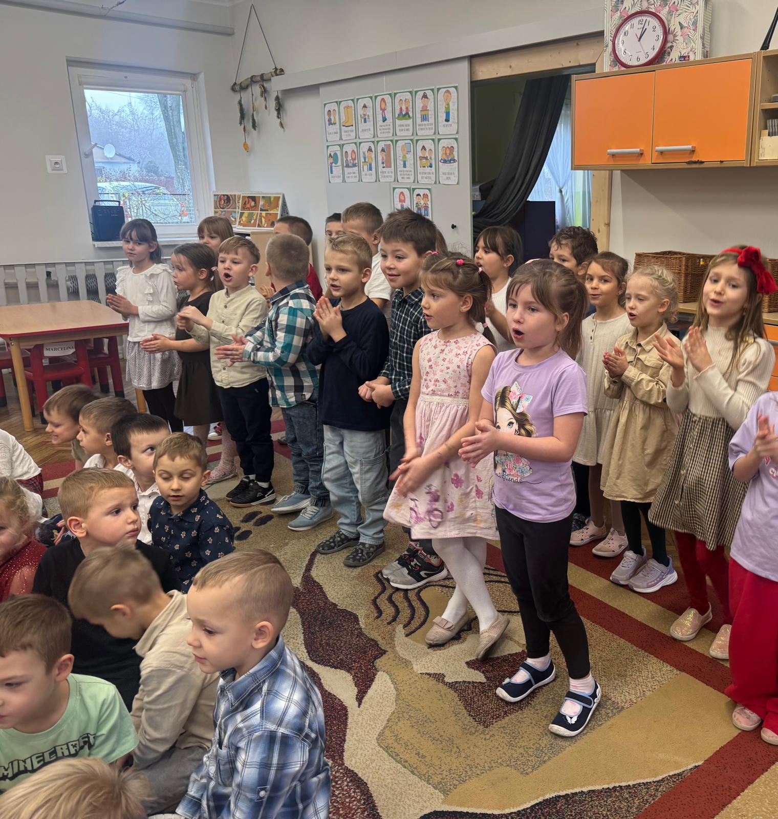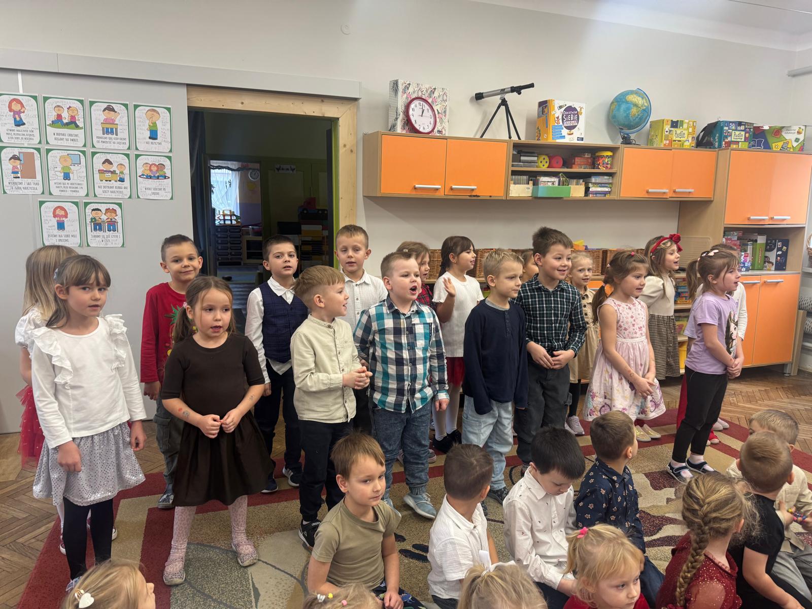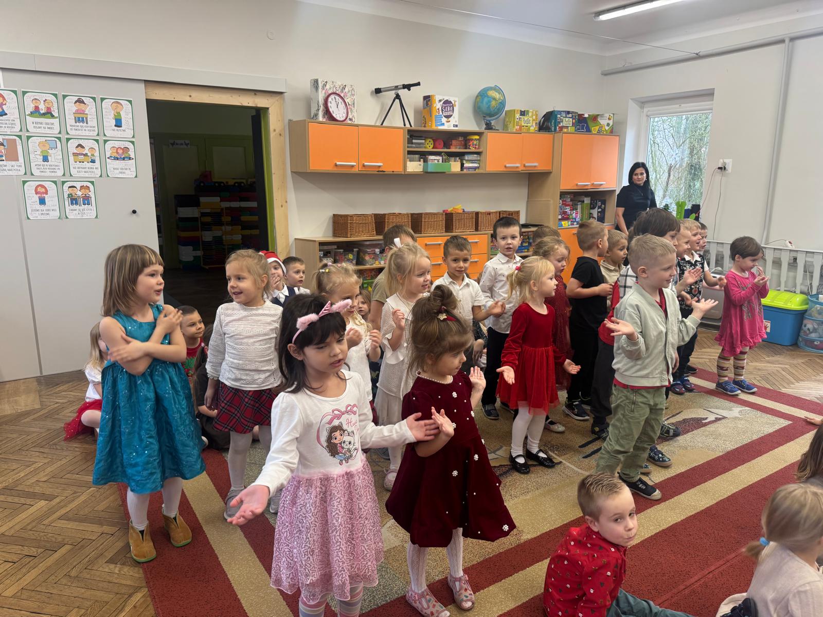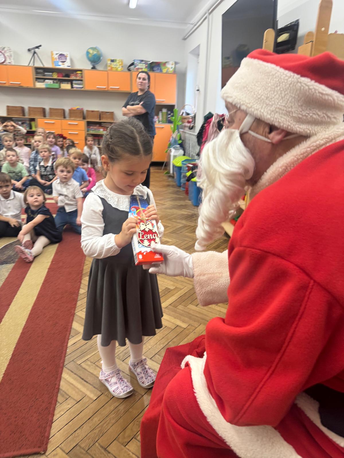 Przedszkolaki już od rana wypatrywały przez okno długo wyczekiwanego gościa i pomimo braku białego puchu, jak co roku przybył do nas na czas. Dzieci z ogromną radością przywitały Mikołaja śpiewając mu piosenki. Nie zabrakło pytań o otrzymane w nocy prezenty.