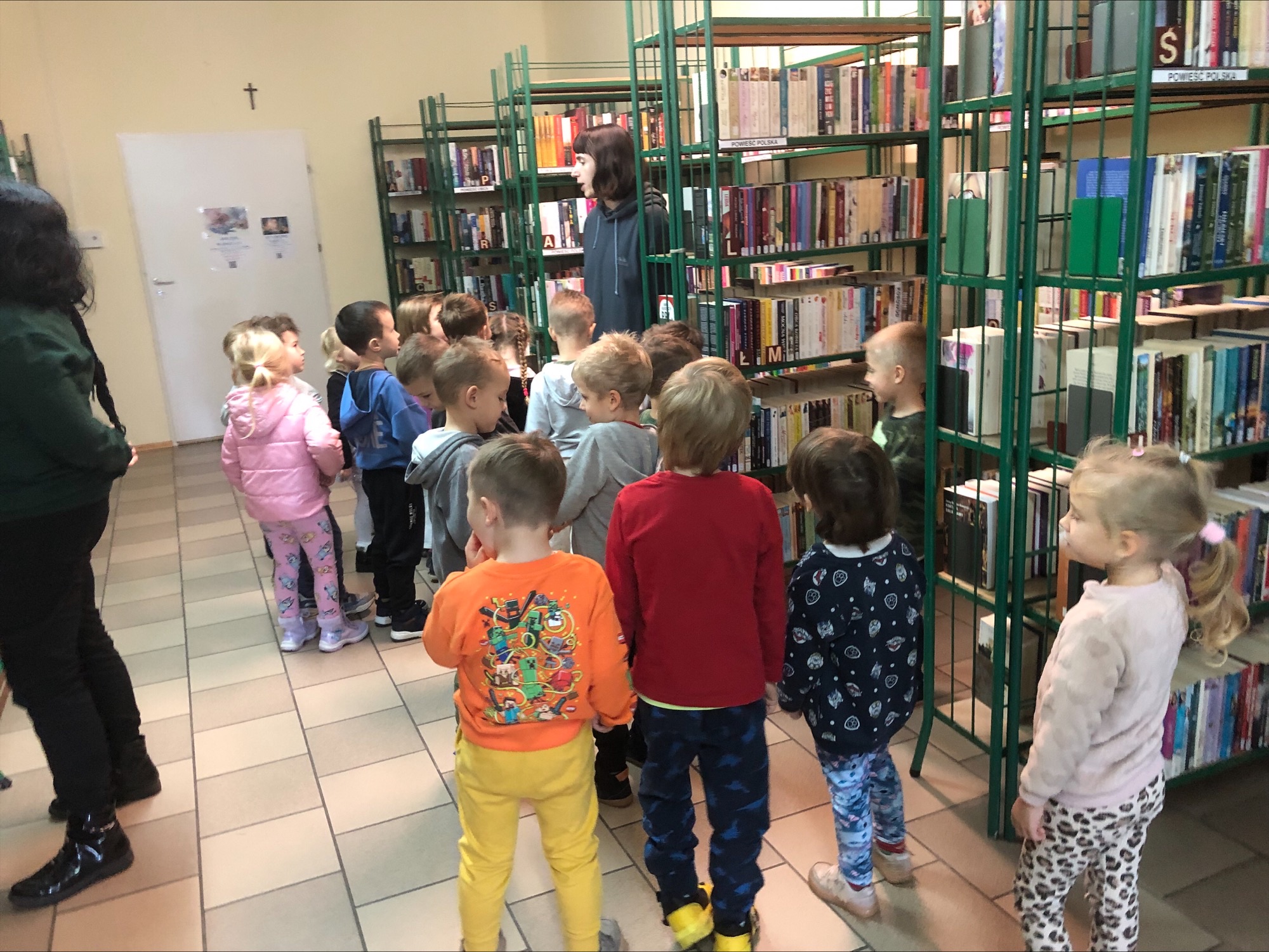 Dnia 4 listopada dzieci z grupy „Krasnoludki” wybrały się na wycieczkę na do biblioteki. Celem wizyty było zapoznanie dzieci z funkcjonowaniem biblioteki, zasadami wypożyczania książek oraz zachęcenie do obcowania z literaturą.